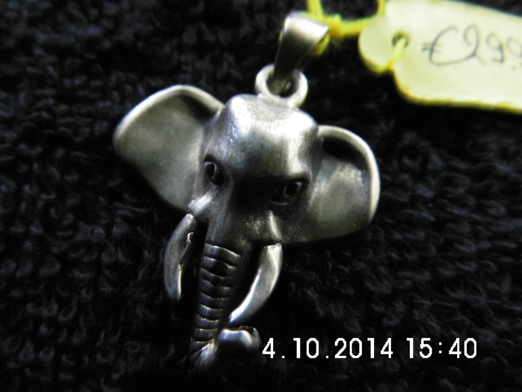 OLIFANTKOP, Art.nr.ZH001 Aantal: € 29,90 PRACHTIG MOOI ZILVEREN HANGER IN DE VORM VAN EEN OLIFANTKOP. ZÉÉR GEDETAILLEERD UITGEWERKT. GEWICHT: 7 GRAM AFMETING: Lengte 3,2 cm en breedte 2,4 cm